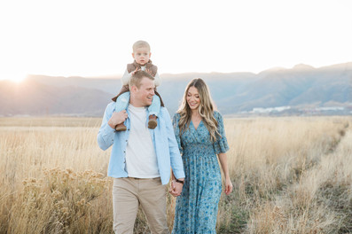 We're bracing ourselves for a big Winter storm here in Denver, so I'm going back through this favorite Fall family session in the glowing sun! I love working with this sweet trio as the sun set in this gorgeous field near their home. Their little guy and I became fast friends. (So long as I kept chasing him!) And his laughs and giggles were worth it! Plus, so long as my clients don't mind my glistening forehead, I'm happy to get a little workout in!